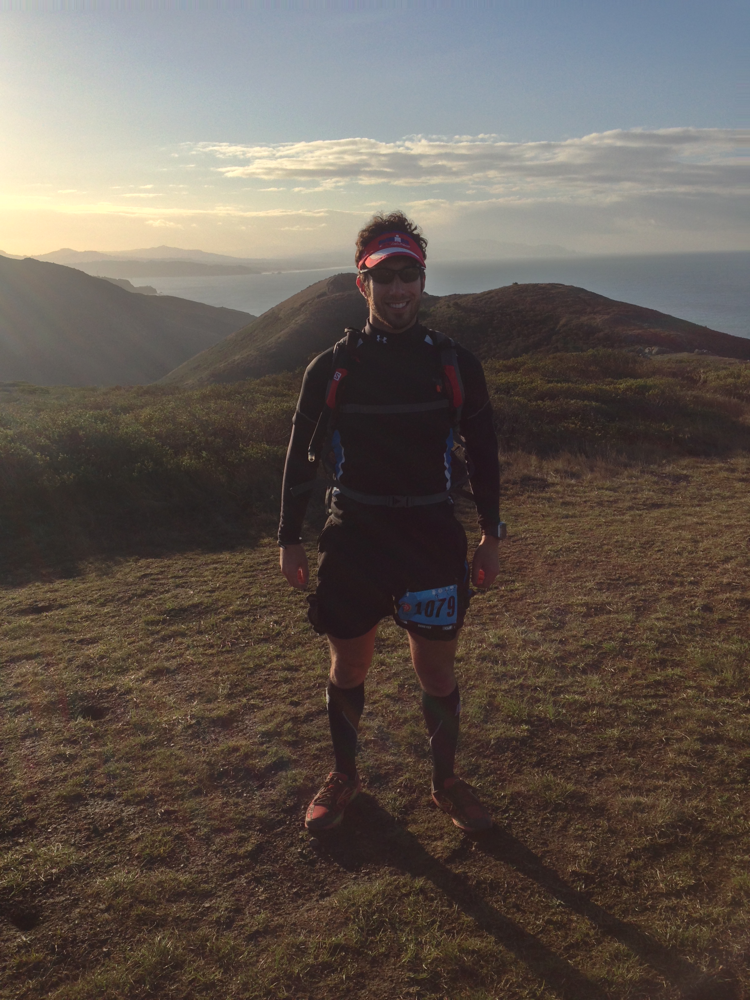 Not long after the start, I heard a familiar voice, and turned around to find my spin instructor, Danny – a 30+ time Ironman finisher right behind us. Danny decided to bow out of the 50 miler gracefully and drop down to the 50K due to excessive fun and a case of the adult flu; what a wimp! Nevertheless, the three of us slogged on and enjoyed a beautiful sunrise over the Marin Headlands.